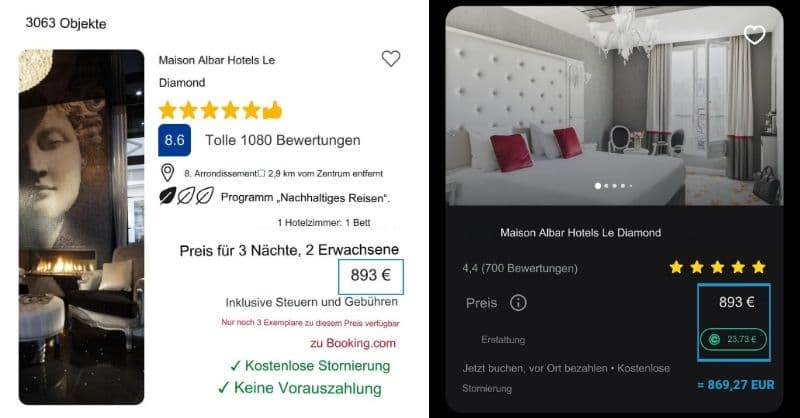 Unter Berücksichtigung des Cashback-Programms ergibt sich ein entscheidender Vorteil: In allen untersuchten Fällen waren die über die Revolut-App gebuchten Hotels letztendlich kostengünstiger als die Angebote auf Booking.com.