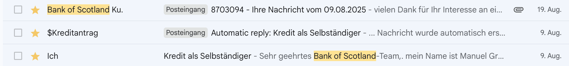 Ja, die Bank of Scotland akzeptiert Unterlagen auch per Post. Allerdings ist zu beachten, dass diese Option den Kreditprozess erheblich verlangsamt. Während ein vollständig online abgewickelter Kredit in der Regel innerhalb von 1 bis 2 Werktagen ausgezahlt wird, kann der postalische Weg die Bearbeitungszeit auf über eine Woche ausdehnen.