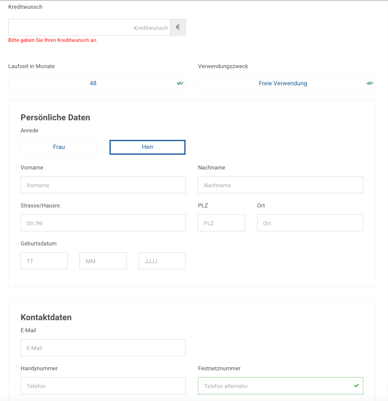 Diese und ähnliche Optionen erfahren Sie erst, nachdem feststeht, für welchen Kreditanbieter Sie in Frage kommen. Dies ist zwar kein direkter Minuspunkt, schränkt jedoch die Planungsfähigkeit und Informationslage vor dem eigentlichen Antrag etwas ein.