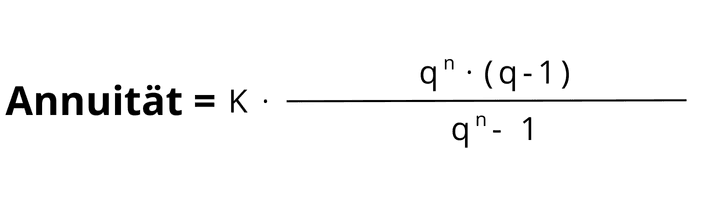 Diese Variante wird genutzt, um die Annuität "A" direkt aus dem Kapital "K", dem Zinsfaktor "q" (wobei q=1+i) und der Laufzeit "n" zu berechnen: