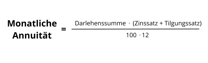In der täglichen Bankpraxis (besonders bei Privatkrediten und Baufinanzierungen) wird die monatliche Rate meist über den Zins- und Tilgungssatz ermittelt: