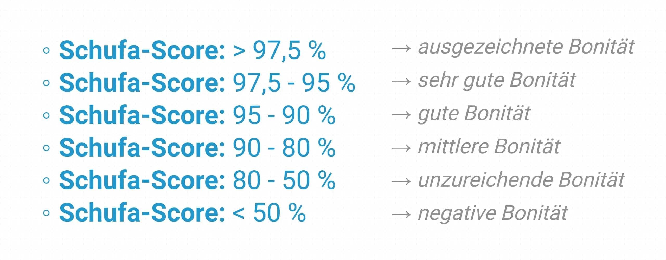 Obwohl es keine exakten Werte gibt, werden die Schufa-Scores im Durchschnitt wie folgt eingestuft: