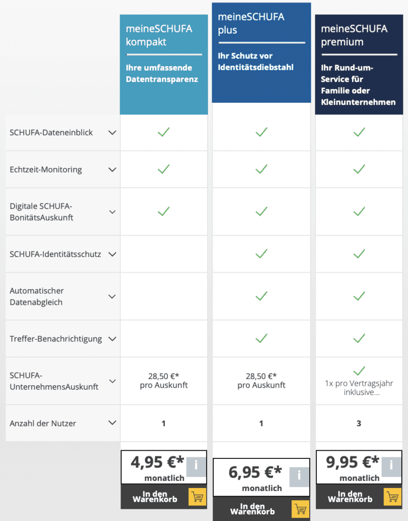SCHUFA bietet hierzu drei verschiedene Abonnement-Modelle an, aus denen Sie wählen können: