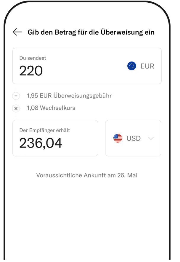 Bei N26 können Sie zu selben Gebühren wie direkt bei Wise Geld ins Ausland überweisen sowie in mehr als 50 unterschiedlichen Fremdwährungen Ihr Geld halten.