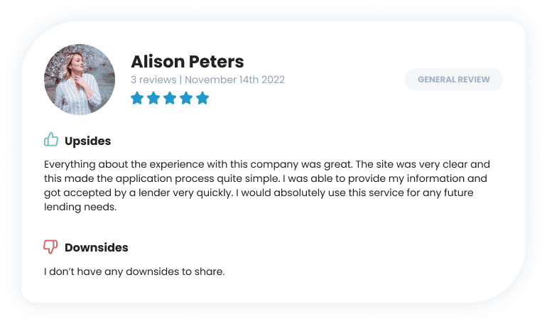 Wenn Sie nach dem richtigen Finanzservice suchen, tun Sie dies mit Vertrauen, wissend, dass wir jede Bewertung sorgfältig prüfen, um sicherzustellen, dass es sich um eine echte Bewertung handelt, die von einem tatsächlichen Verbraucher geschrieben wurde.